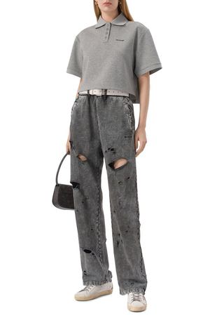 Юбку-баллон с асимметричной драпировкой сшили из хлопкового поплина. Модель с широким поясом с прямоугольной пряжкой дополнили боковыми карманами и потайными кнопками сзади.