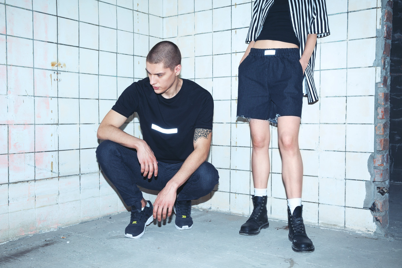 В одежде нам нравится грубость и легкая агрессивность, именно поэтому выбрали тему стройки. Рваные края, грубый крой, светоотражающие элементы – это своего рода протест против традиционности. Плюс строительная одежда комфортная и функциональная – это именно то, к чему мы стремимся.