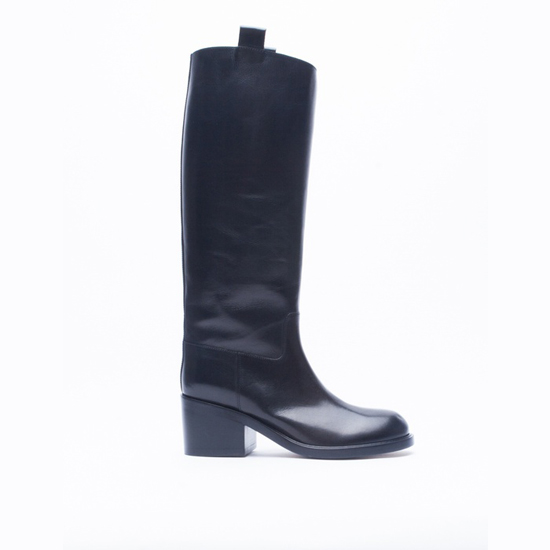 Мы выбрали сегодня демисезонные сапоги в жокейском стиле бельгийской марки A.F. Vandevorst. Такая модель универсальна: они отлично будут смотреться с юбкой, платьем или брюками. Мы рекомендуем носить их с плотными монохромными платьями прямого силуэта. Купить сапоги можно в интернет-магазине SVMoscow за 36300 рублей.